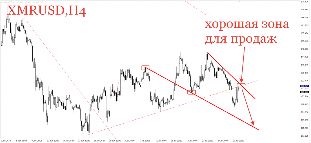 пока не будет пробит вверх уровень 128,6 — актуальны продажи. Цель смотрим по наклонной линии от 9 июля